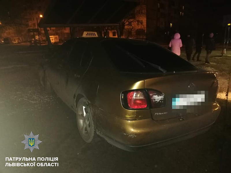 Во Львове ночью на улице Кавалеридзе, напротив школы, такси Nissan с въехало в остановку общественного транспорта. Выяснилось, что 27-летний водитель был пьян, более того – никогда не имел прав, сообщает Патрульная полиция Львовской области.